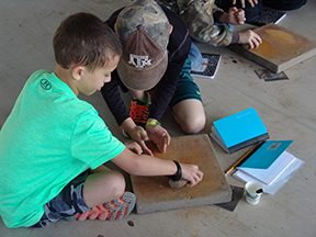 The museum hosted 40 kids at our Spring 2017 NASTUMLA "Survival Skills" Camp! NASTUMLA is Native American Science & Technology Using Materials, Land, Art. Kids participated in various activities such as painting with rocks, cordage making, throwing atlatl, and flint knapping. They were also engaged in discussing the Horn Shelter Exhibit and our Natural History Collections over a two-day period.